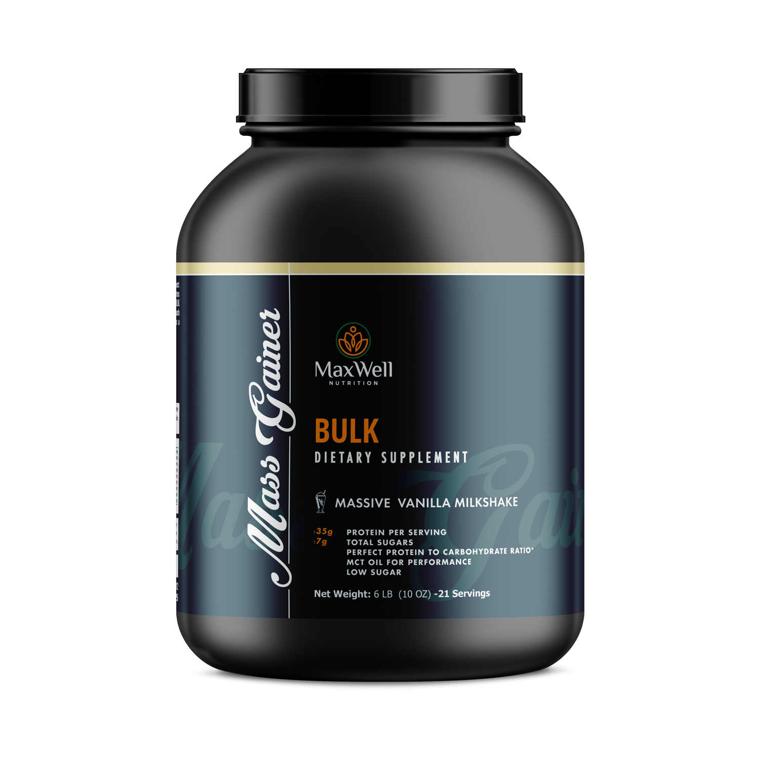 MaxWell Nutrition’s BULK is the ultimate mass gainer designed to help you achieve your muscle-building goals. Available in two mouth-watering flavors, Massive Chocolate Milkshake and Massive Vanilla Milkshake, BULK packs a powerful nutritional punch with 500 calories per serving. All our products are made in the USA and are 3rd party lab-tested for quality and potency.